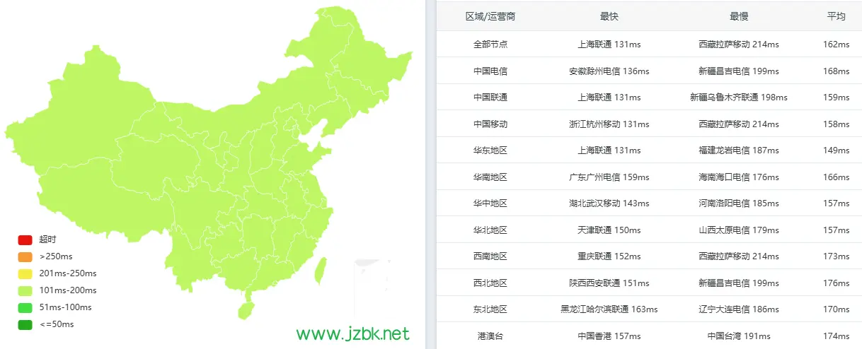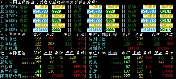 2.三网回程测试,可以看到与老板所描述的完全一致!非常奈斯!