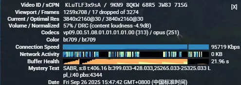 5.youtube视频测试,由于老王宽带是联通100m所以跑满上限, 如果你宽带大,可以继续上升!