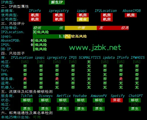 2.ip属性检测,全部绿油油,ip原生,十分干净,流媒体全解锁!