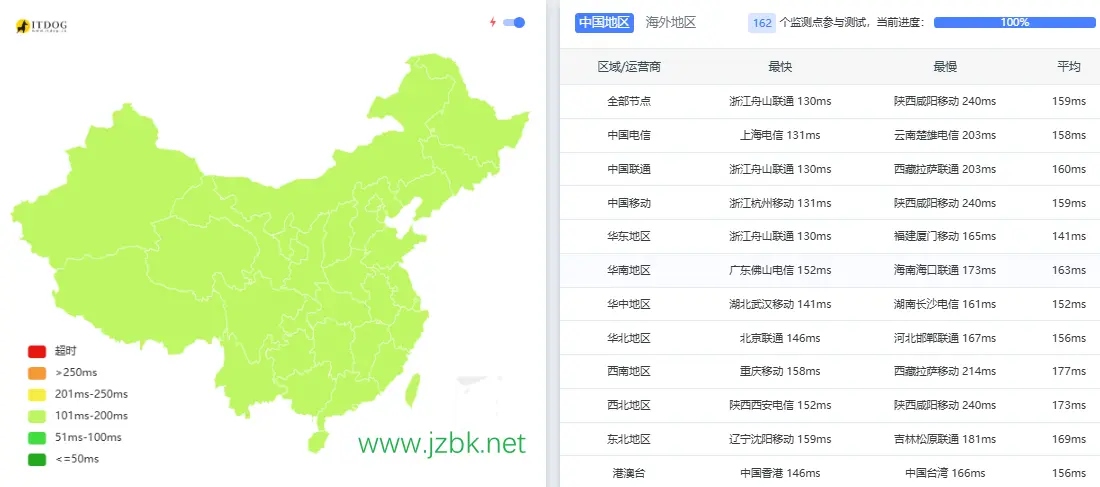 4.全网ping测试结果,延迟极小!